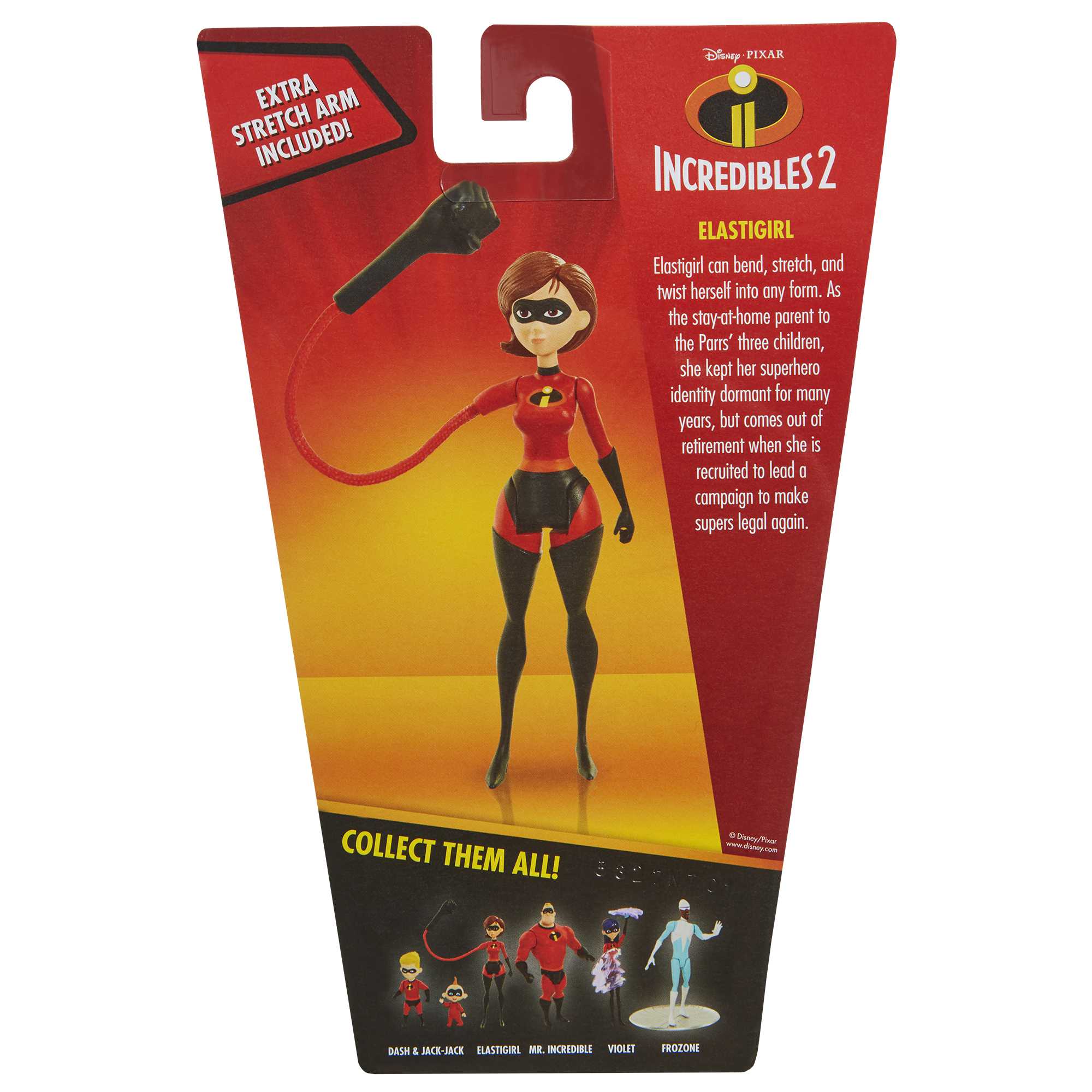 В ассортименте представлено 5 персонажей: мама Хелен - 9,3 см, папа Боб- 10 см, Вайолет - 8,9 см, Дэш - 6,4 см и малыш Джек-Джек - 4,4 см, а также Люциус Бест – 10 см. Набор с мамой Хелен включает в себя резиновую руку, с Вайолет в наборе – суперзащита, а в наборе с Люциусом Бест – ледяные санки.