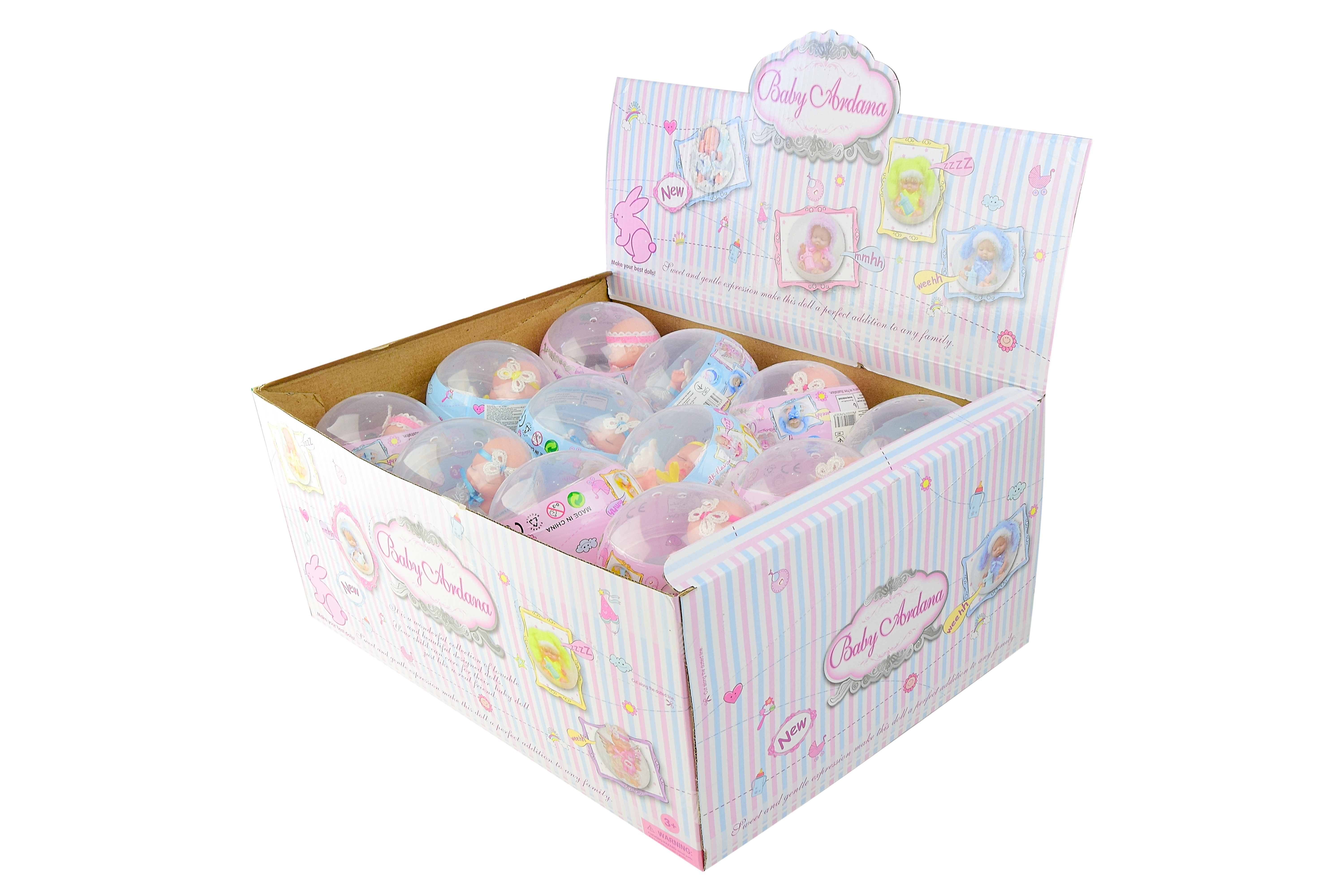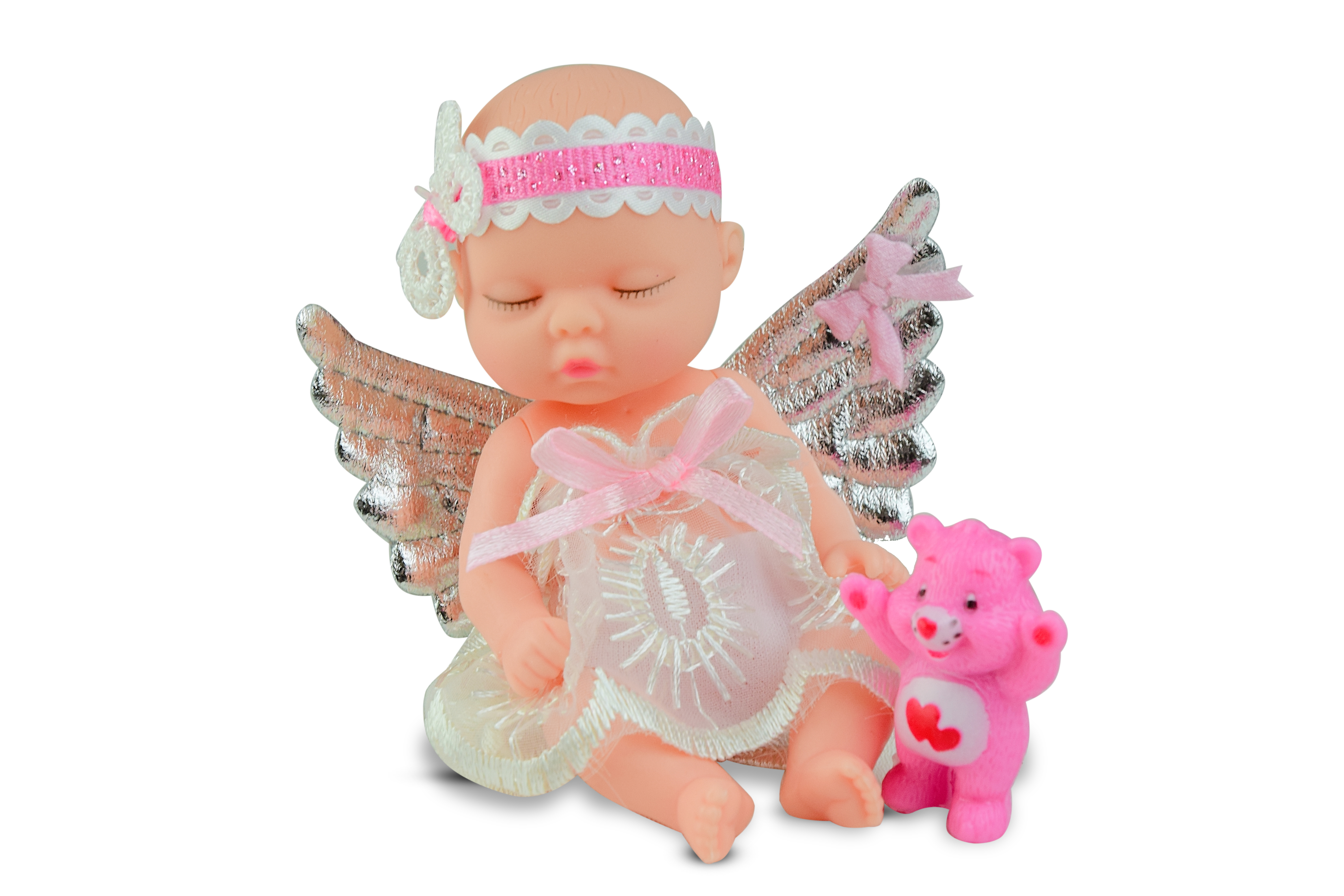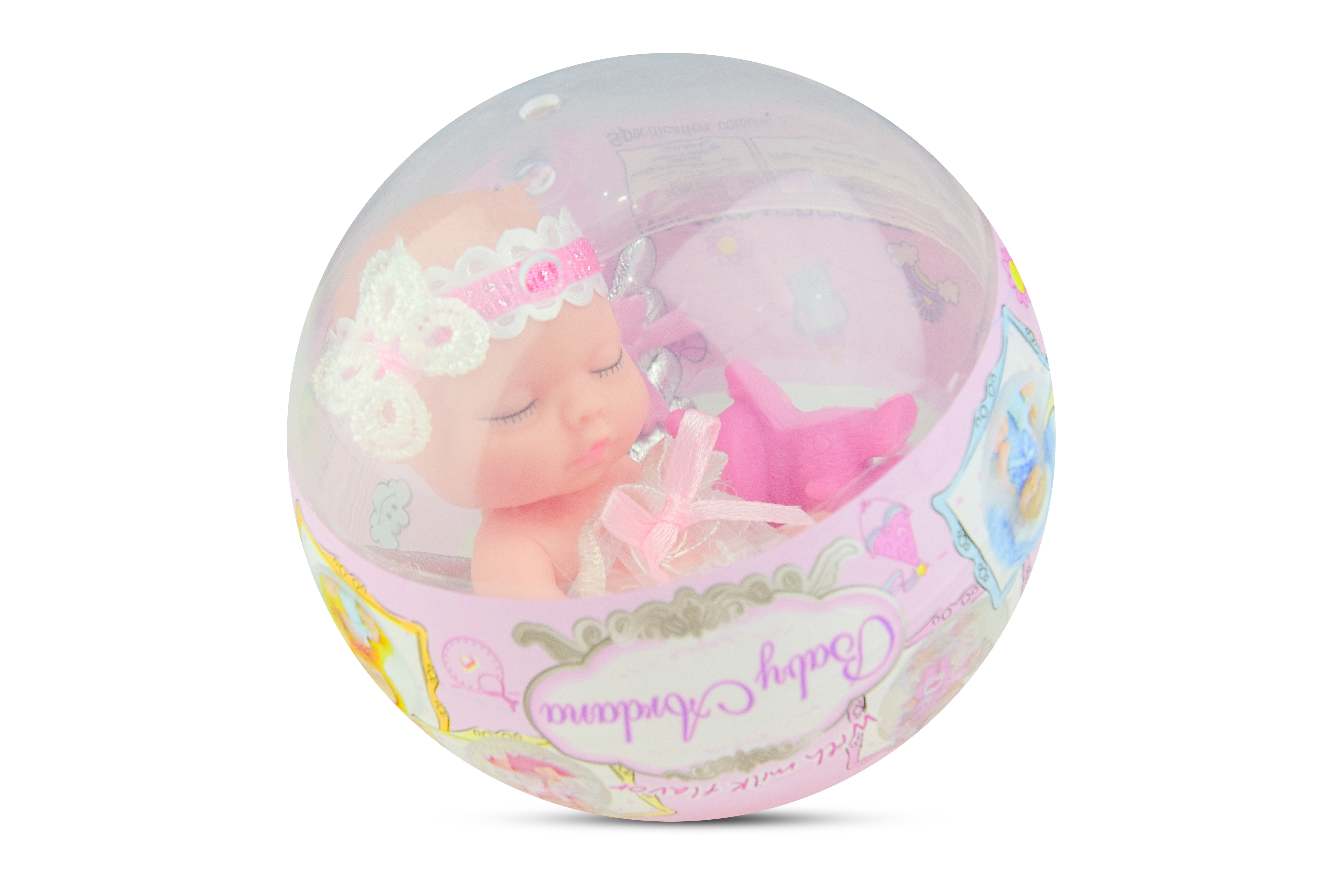 Кукла в пластиковом шарике. Спящий пупс-ангелочек с мишкой.