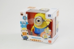 - Стюарт произносит 46 различных звуков и фраз: чавкает, смеется, кричит, говорит знаменитое: «Бидо-бидо». Если несколько раз быстро нажать на карман, то миньон зальется непрерывным смехом.