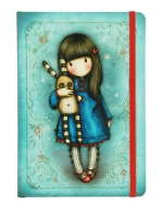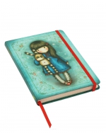 Обложка блокнота выполнена из прочного материала и оформлена стилизованным рисунком с изображением девочки Gorjuss. Внутренний блок сделан из тонированных листов кремового цвета, в линейку. Закладка в виде ленты поможет ориентироваться в записях. На внутренней стороне задней обложки расположен вместительный кармашек для заметок и карточек. Закрывается на резинку.