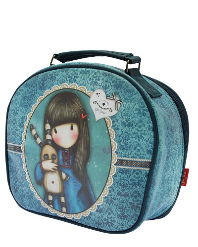 Практичный и удобный вариант для хранения косметики. Аксессуар оснащен удобной ручкой, внутренним кармашком и застежкой-молнией в форме сердца. На передней и задней стенках косметички изображена изображена милая девочка Gorjuss с игрушечным зайчиком в руках на серо-голубом фоне.