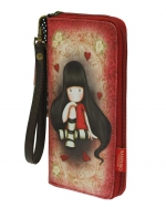 Удобный и стильный кошелек с изображением задумчивой малышки Gorjuss. Внутри – два больших отделения для бумажных купюр, несколько кармашков для карточек или проездного, отделение для монет. Удобно носить с собой благодаря ремешку на карабине.