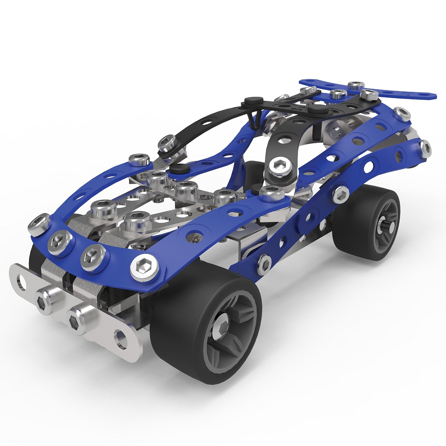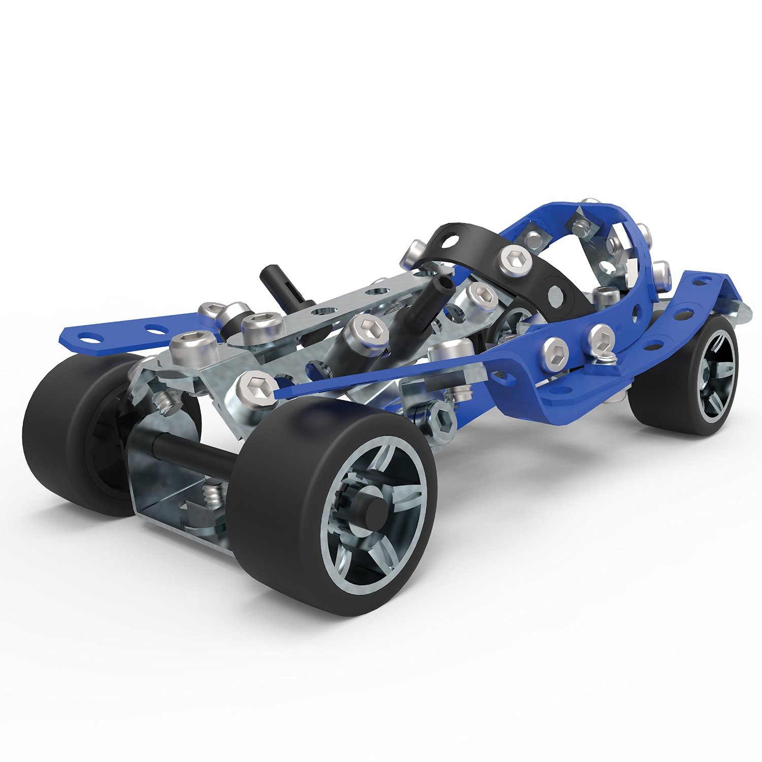 Юному инженеру набор позволит собрать 1 из 5 различных моделей спортивных авто. Готовую машину можно разобрать, чтобы построить следующую модель. Модели можно собирать по инструкции, которая прилагается в комплекте, или – создавать собственные изобретения. 2 инструмента для сборки прилагаются в комплекте.