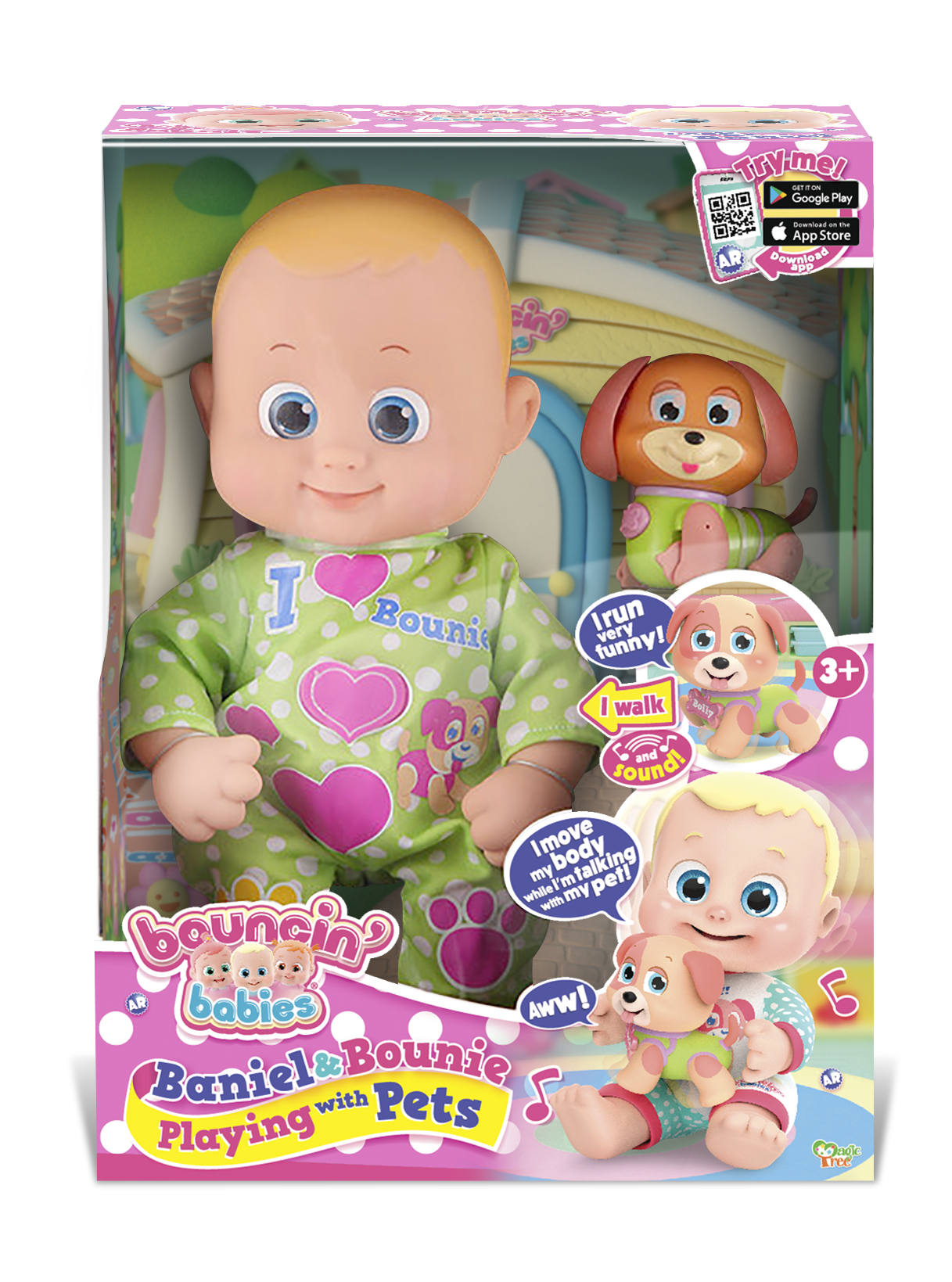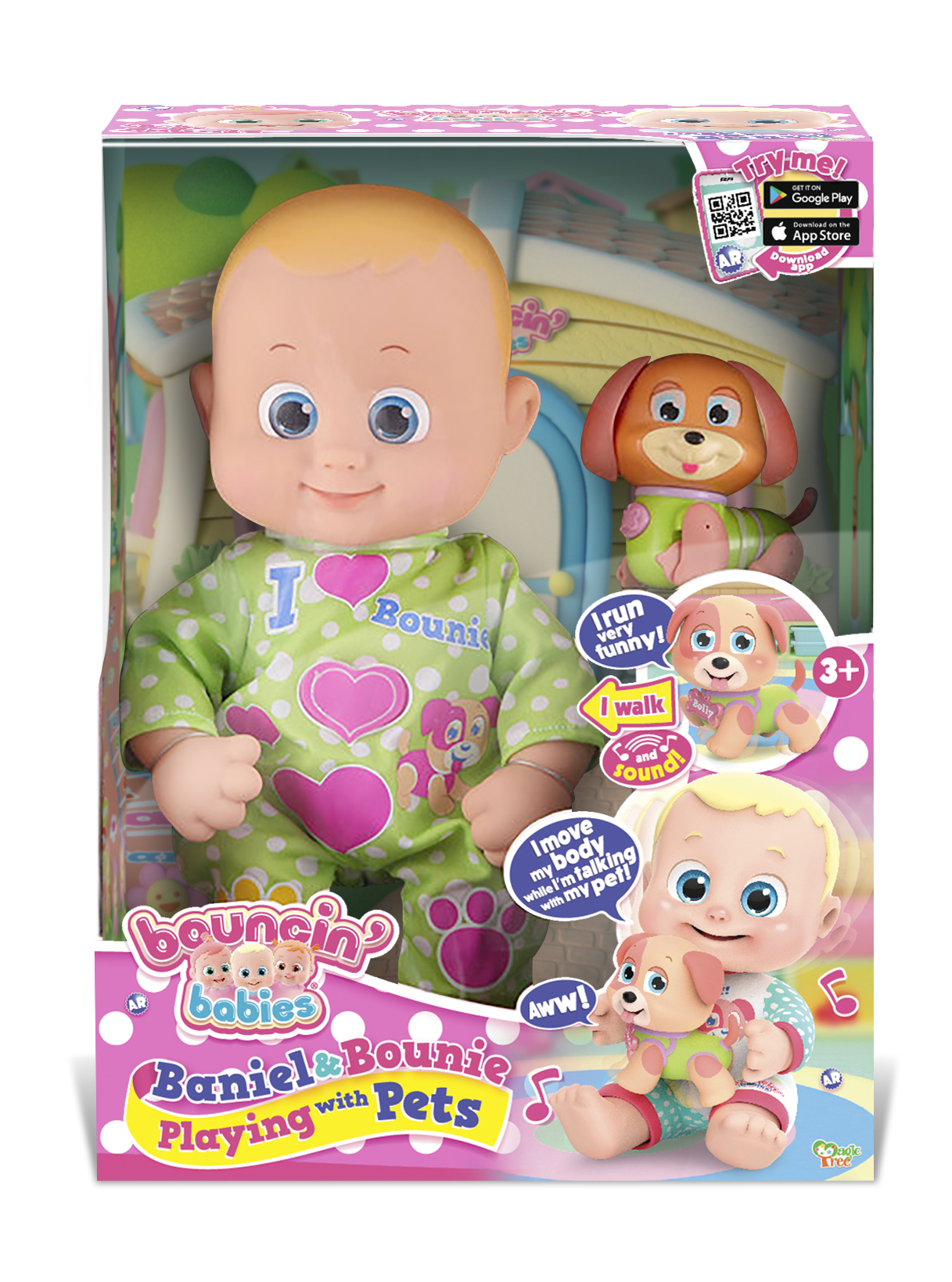 И кукла, и питомец обладают звуковыми эффектами. В ассортименте 2 куклы мальчик Baniel и девочка Bounie.