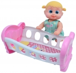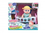 Кукла умеет ползать, а также обладает звуковыми эффектами. В наборе с куклой представлена люлька. Кукла шевелит ножками и ручками, качаясь в ней. В ассортименте 1 кукла девочка Bounie.