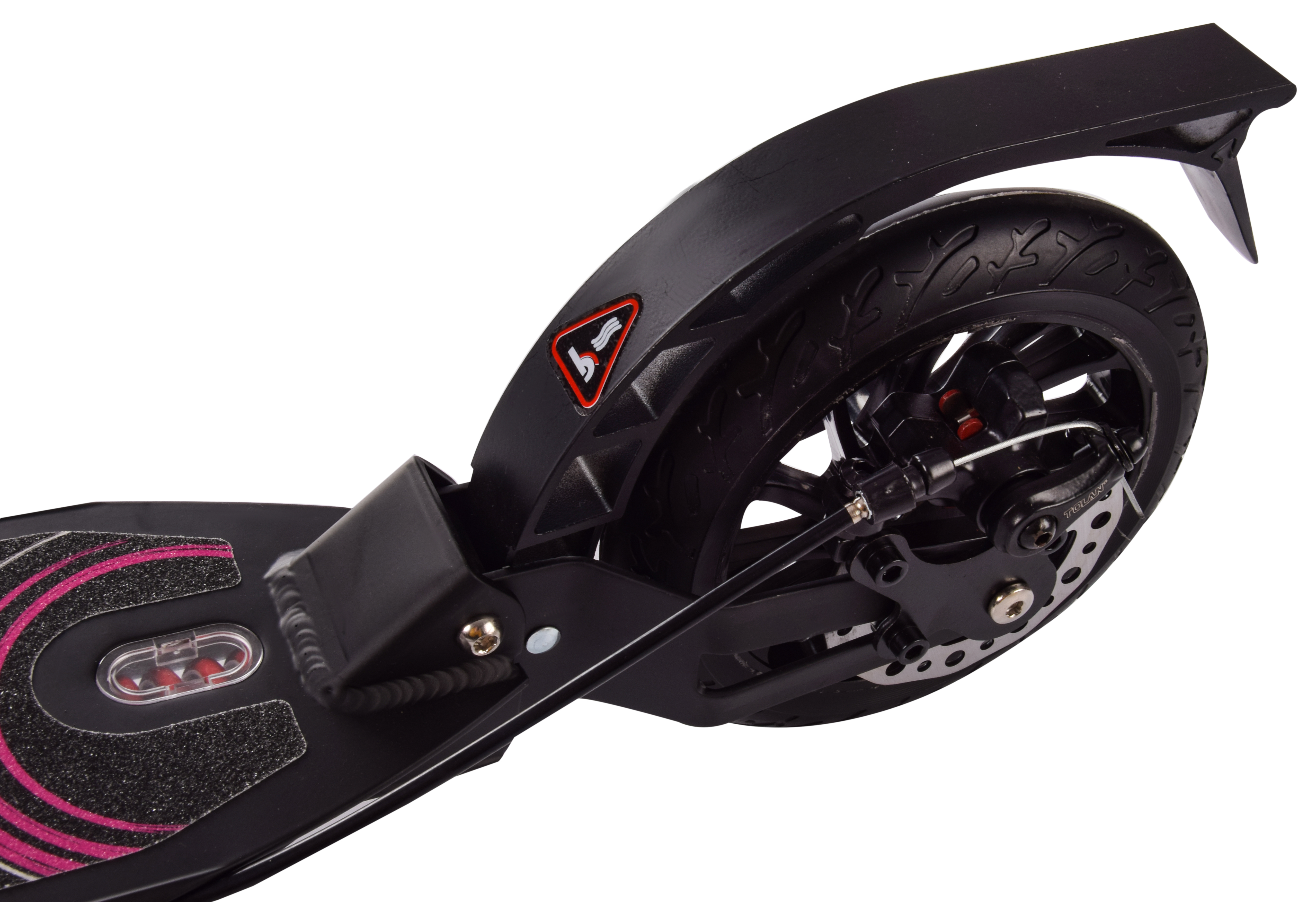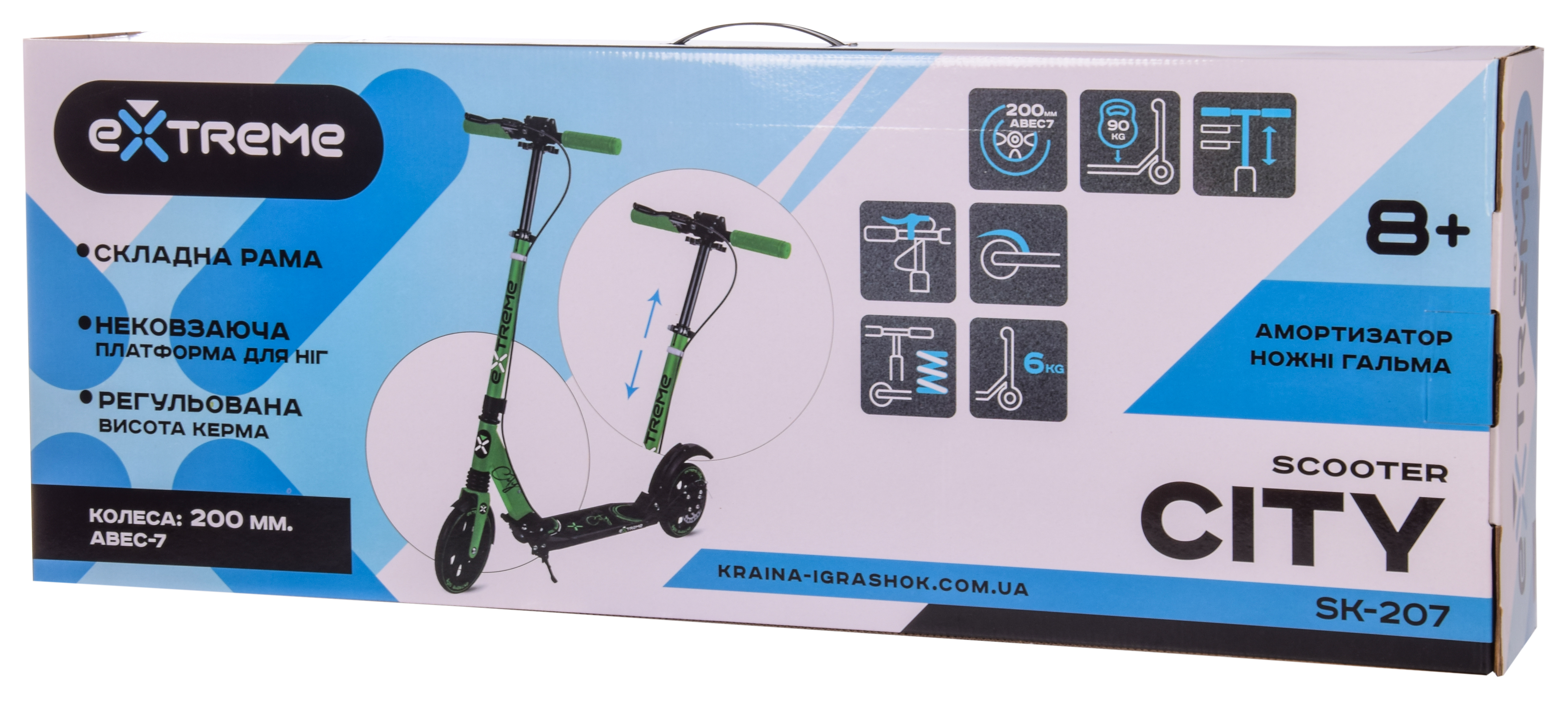 Максимально укомплектованный городской самокат от "Extreme Motion", максимально комфортная модель CITY. Колёса диаметром 200 мм на подшипниках Abec 7 позволяют преодолевать расстояния, требуя минимум ваших усилий. Передний и задний амортизаторы делают ваши поездки максимально комфортными. Ручной тормоз позволит с лёгкостью маневрировать вам на крутых поворотах. Самокат CITY выполнен из высокопрочного алюминия и имеет регулируемый по высоте руль в трёх положениях. Крылья спереди и сзади сохранят Вашу одежду в чистоте.