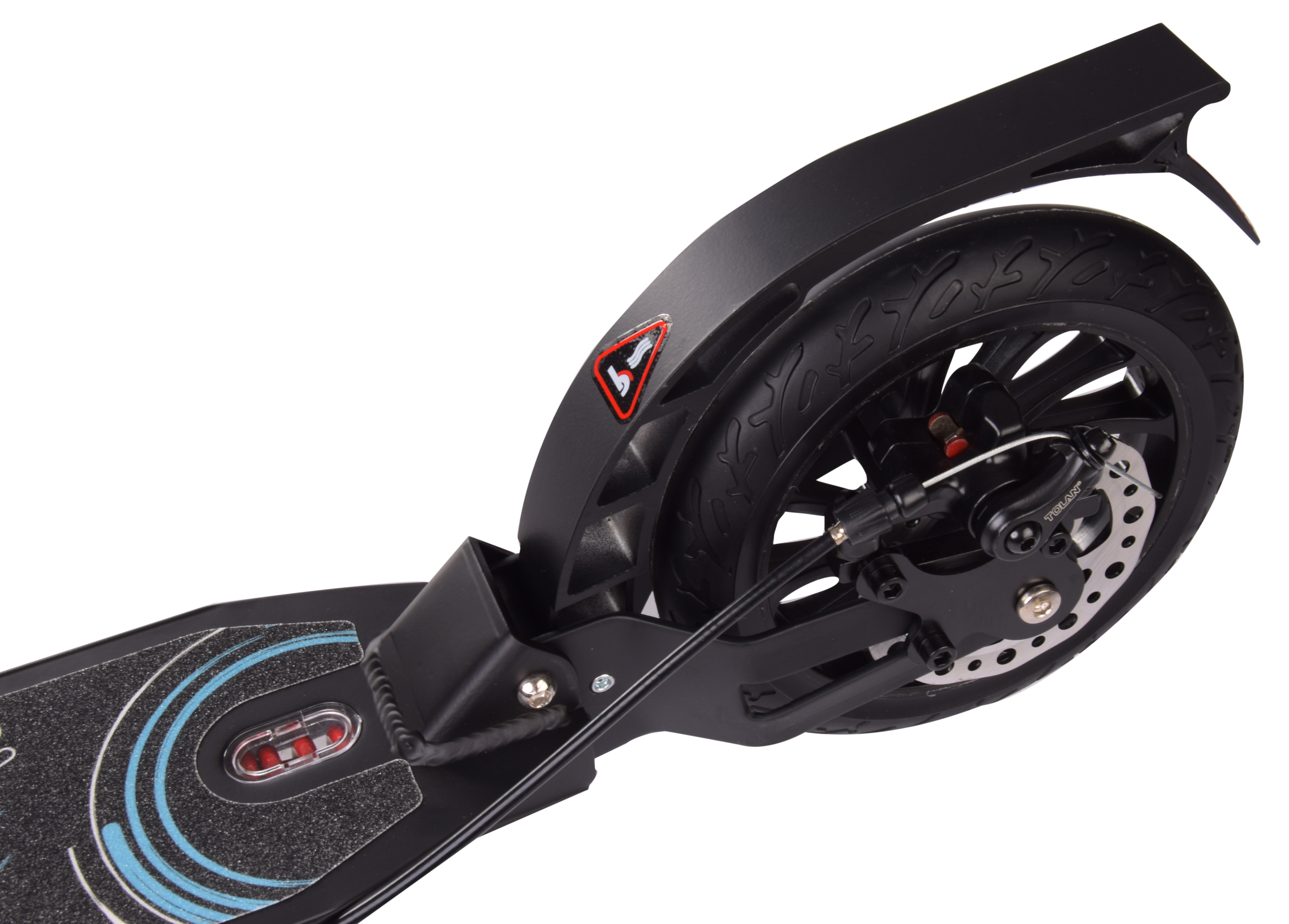 Максимально укомплектованный городской самокат от "Extreme Motion", максимально комфортная модель CITY. Колёса диаметром 200 мм на подшипниках Abec 7 позволяют преодолевать расстояния, требуя минимум ваших усилий. Передний и задний амортизаторы делают ваши поездки максимально комфортными. Ручной тормоз позволит с лёгкостью маневрировать вам на крутых поворотах. Самокат CITY выполнен из высокопрочного алюминия и имеет регулируемый по высоте руль в трёх положениях. Крылья спереди и сзади сохранят Вашу одежду в чистоте.