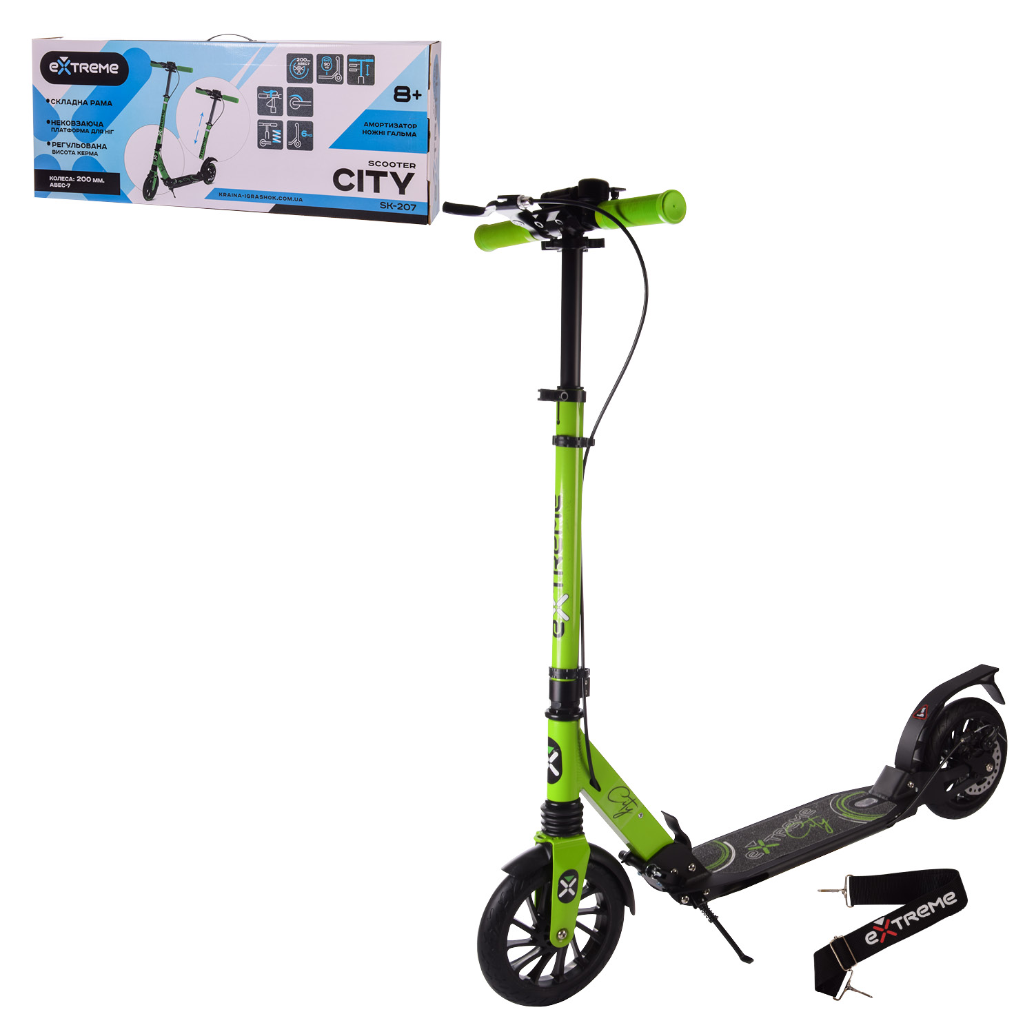 Максимально укомплектованный городской самокат от "Extreme Motion", максимально комфортная модель CITY. Колёса диаметром 200 мм на подшипниках Abec 7 позволяют преодолевать расстояния, требуя минимум ваших усилий. Передний и задний амортизаторы делают ваши поездки максимально комфортными. Ручной тормоз позволит с лёгкостью маневрировать вам на крутых поворотах. Самокат CITY выполнен из высокопрочного алюминия и имеет регулируемый по высоте руль в трёх положениях. Крылья спереди и сзади сохранят Вашу одежду в чистоте.