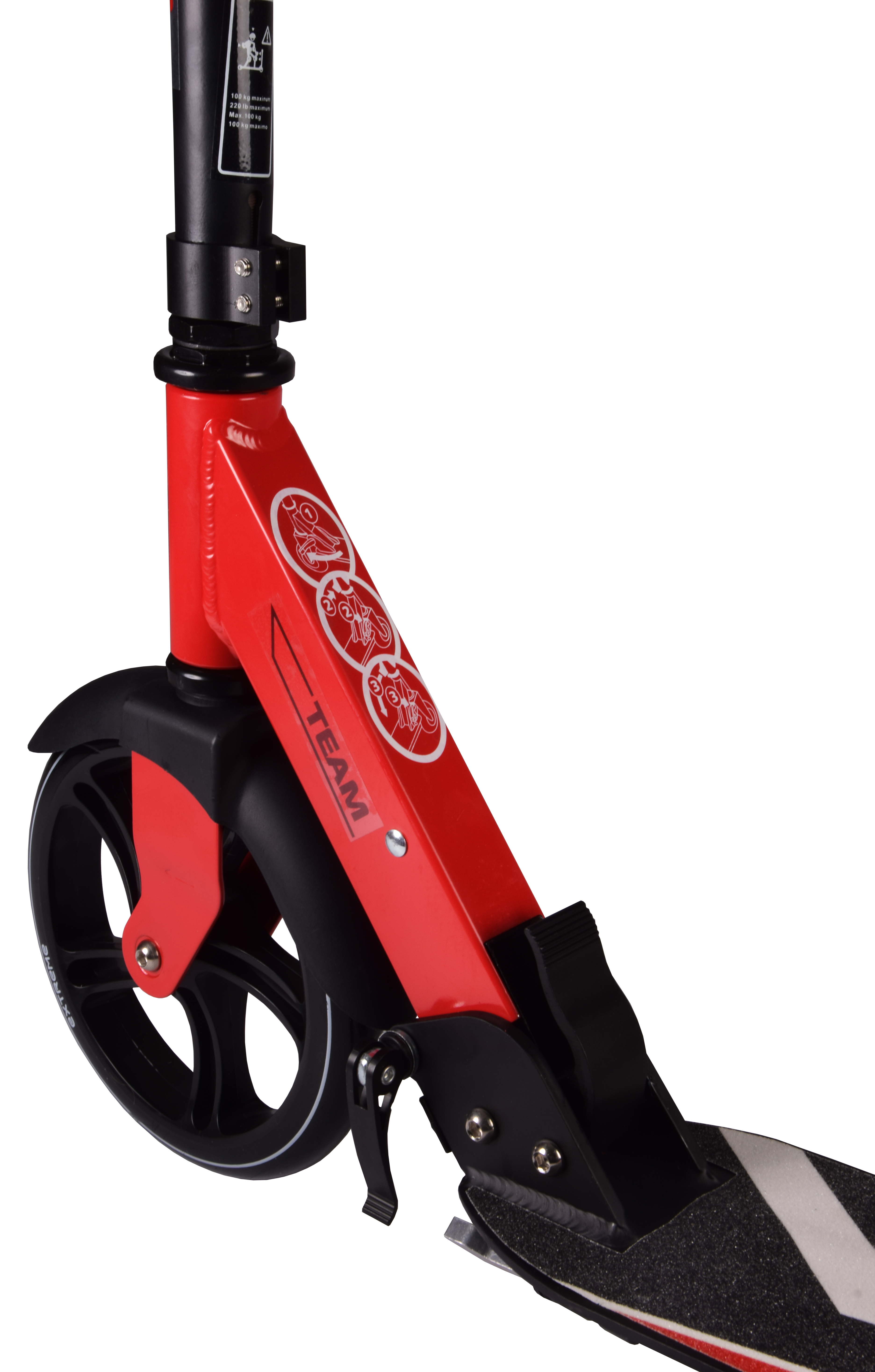 Самокат TEAM изготовлен из высококачественного алюминия и имеет регулируемый по высоте руль от 77 до 96 см.