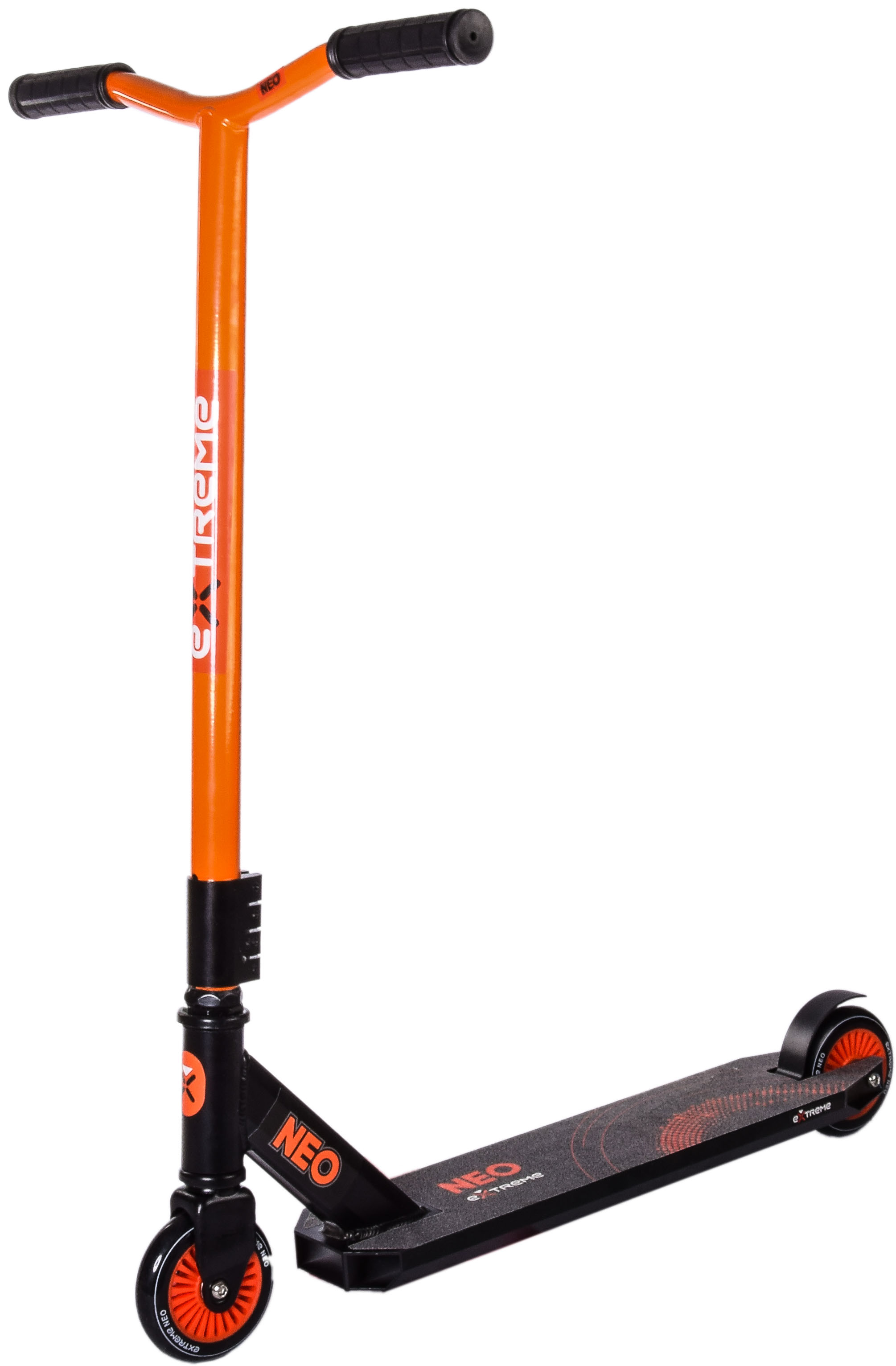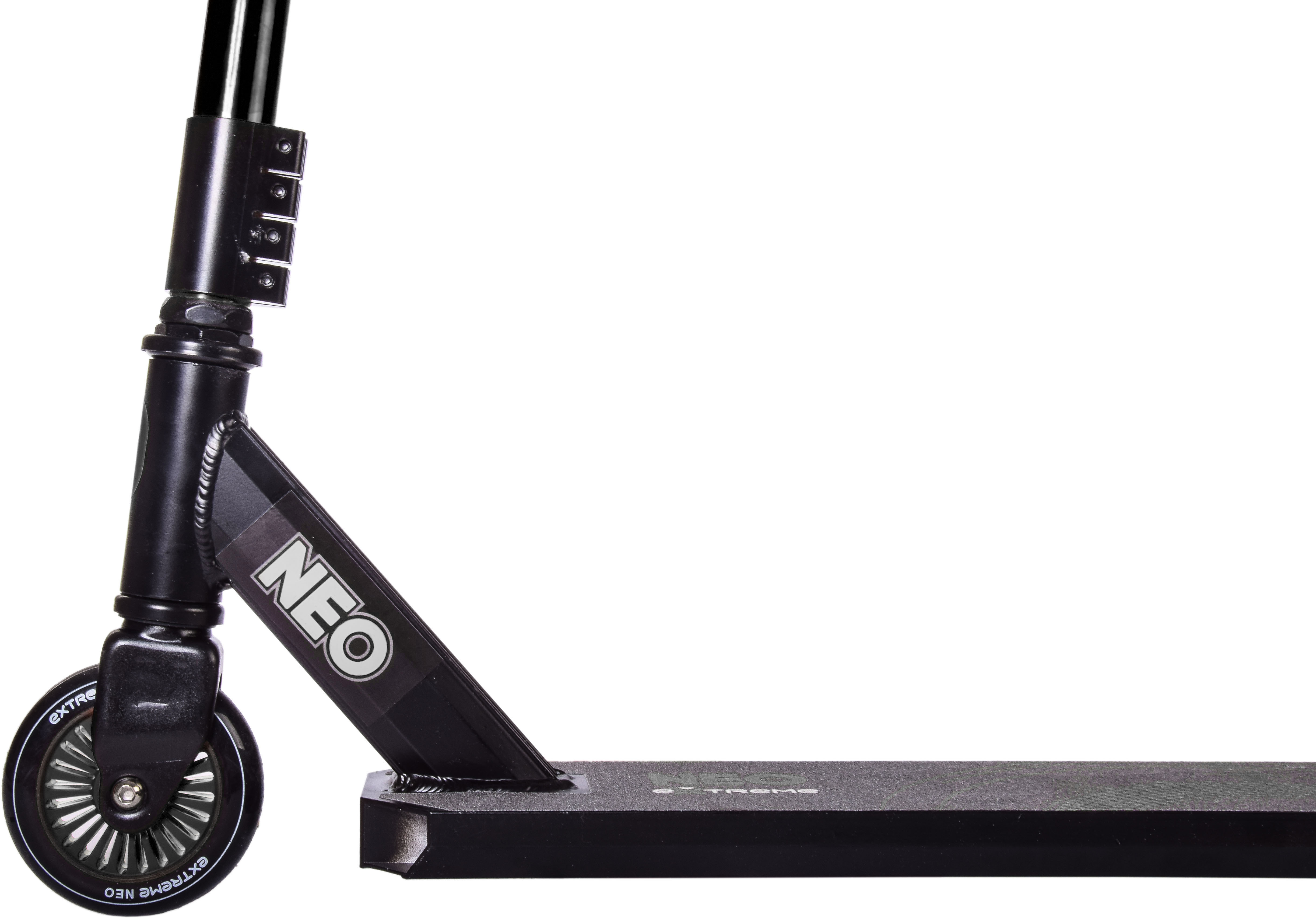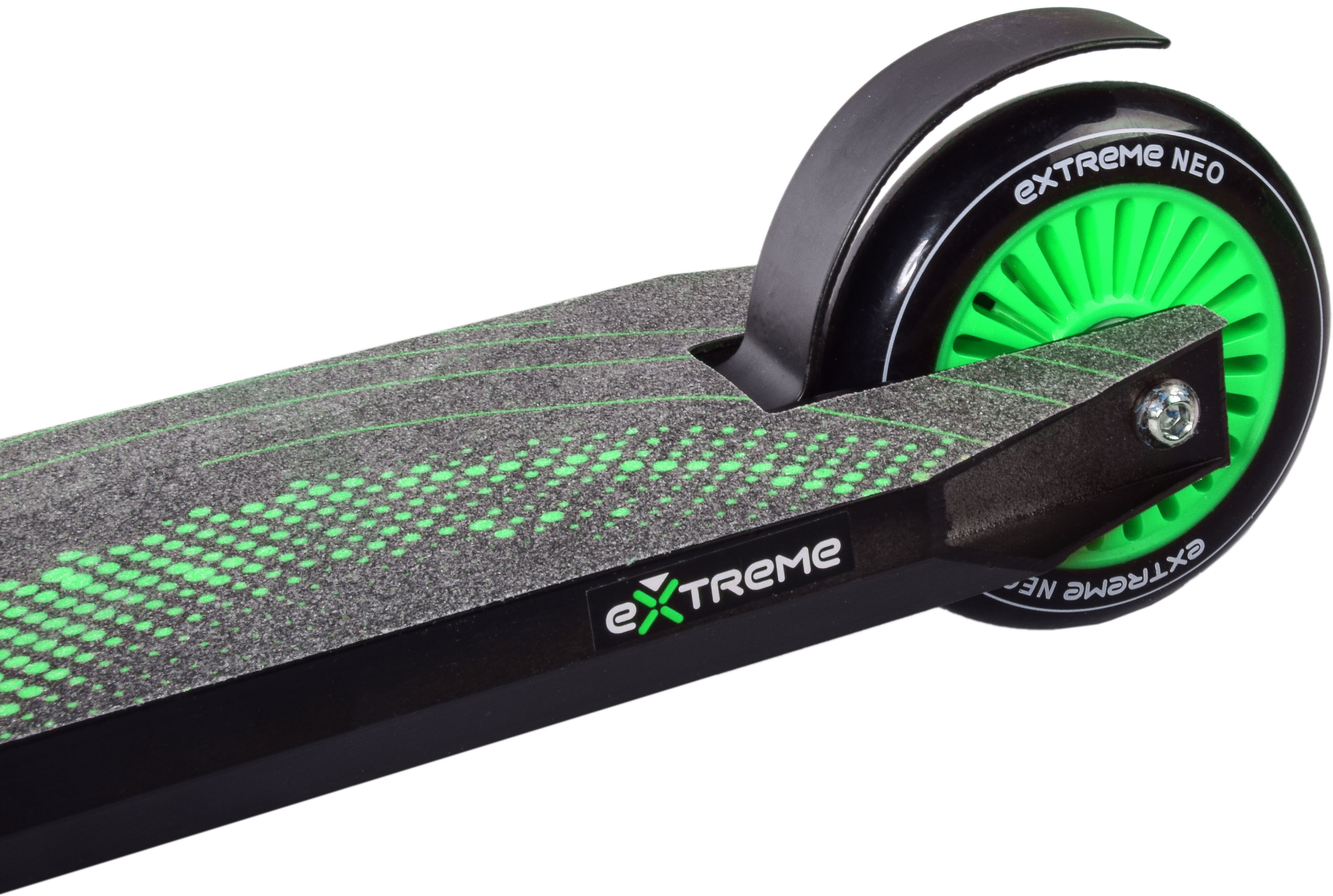 Колёса экстрим самоката диаметром 120 мм на цельных алюминиевых дисках с классом жёсткости PU 82A на лучших подшипниках ABEC-9 позволяют быстрее разгоняться и набирать более высокую скорость.