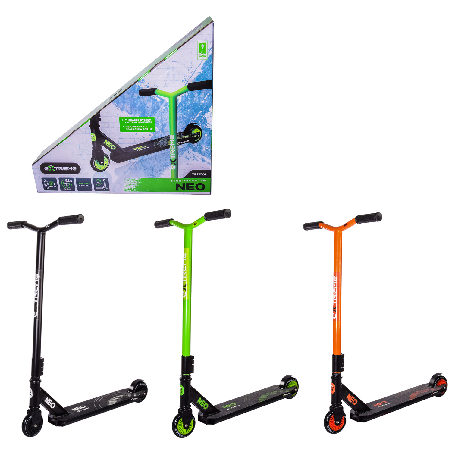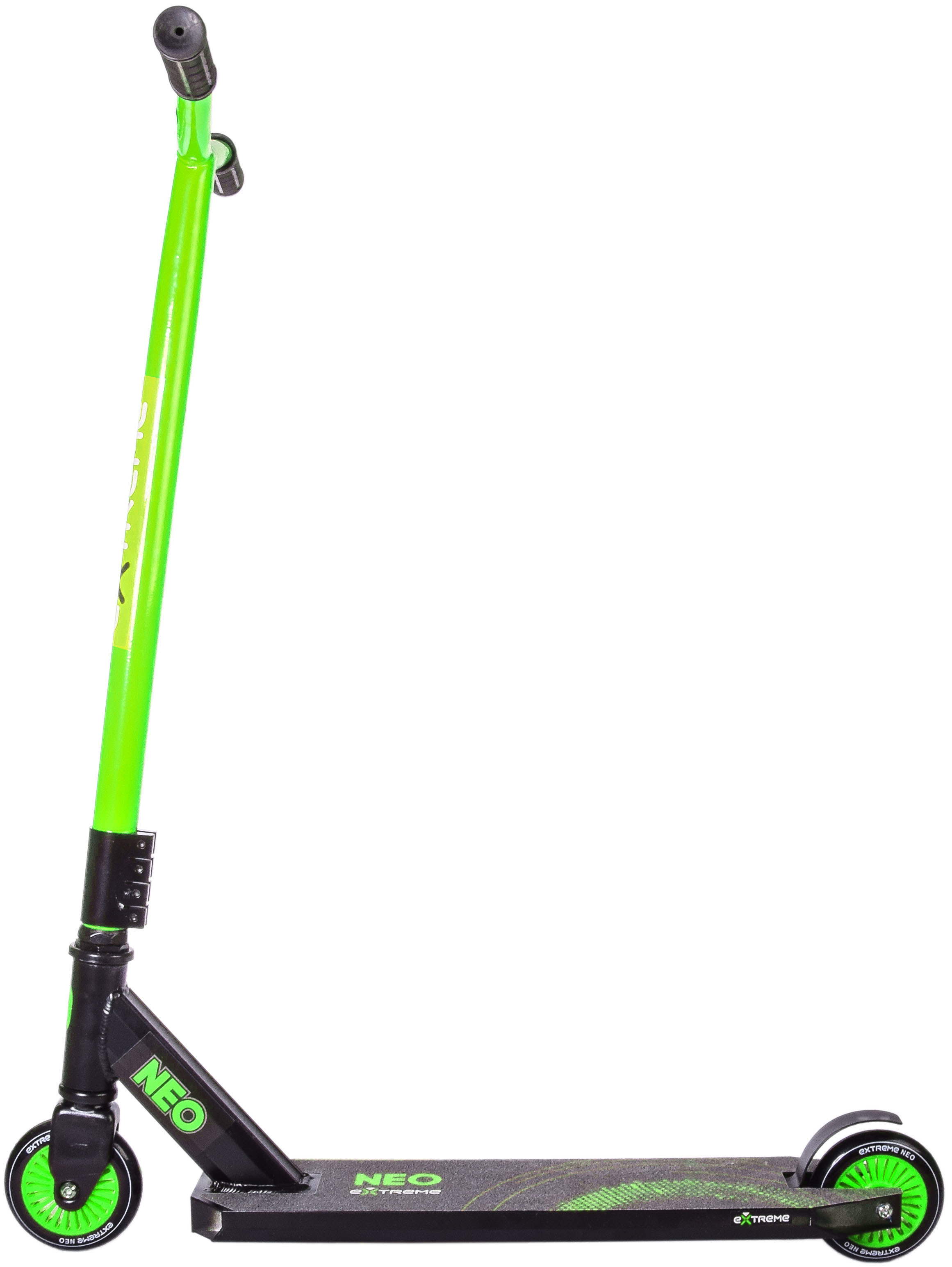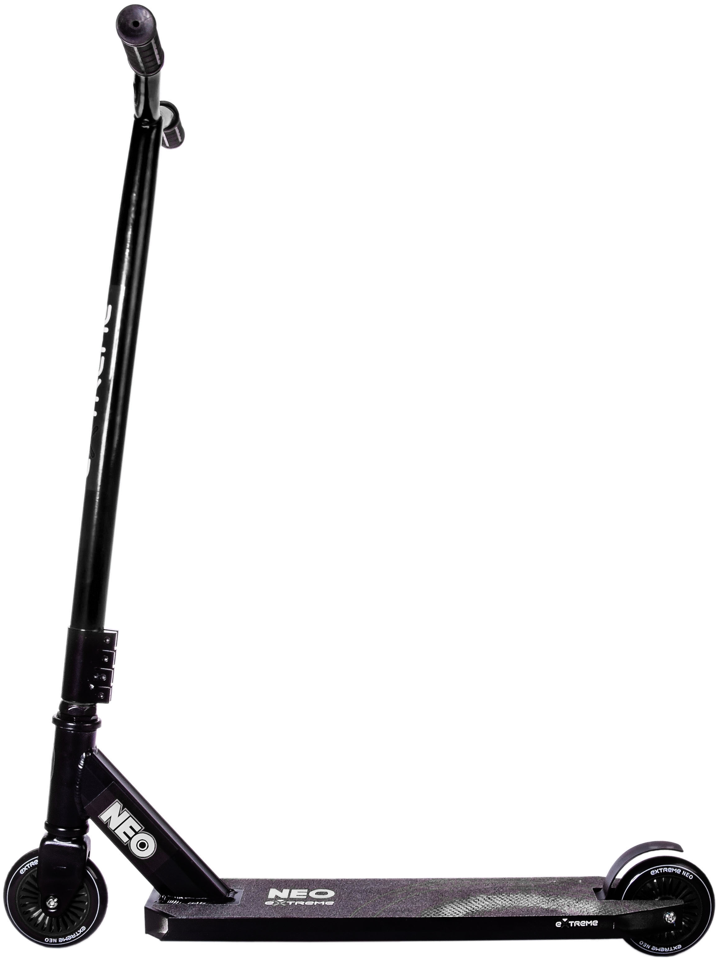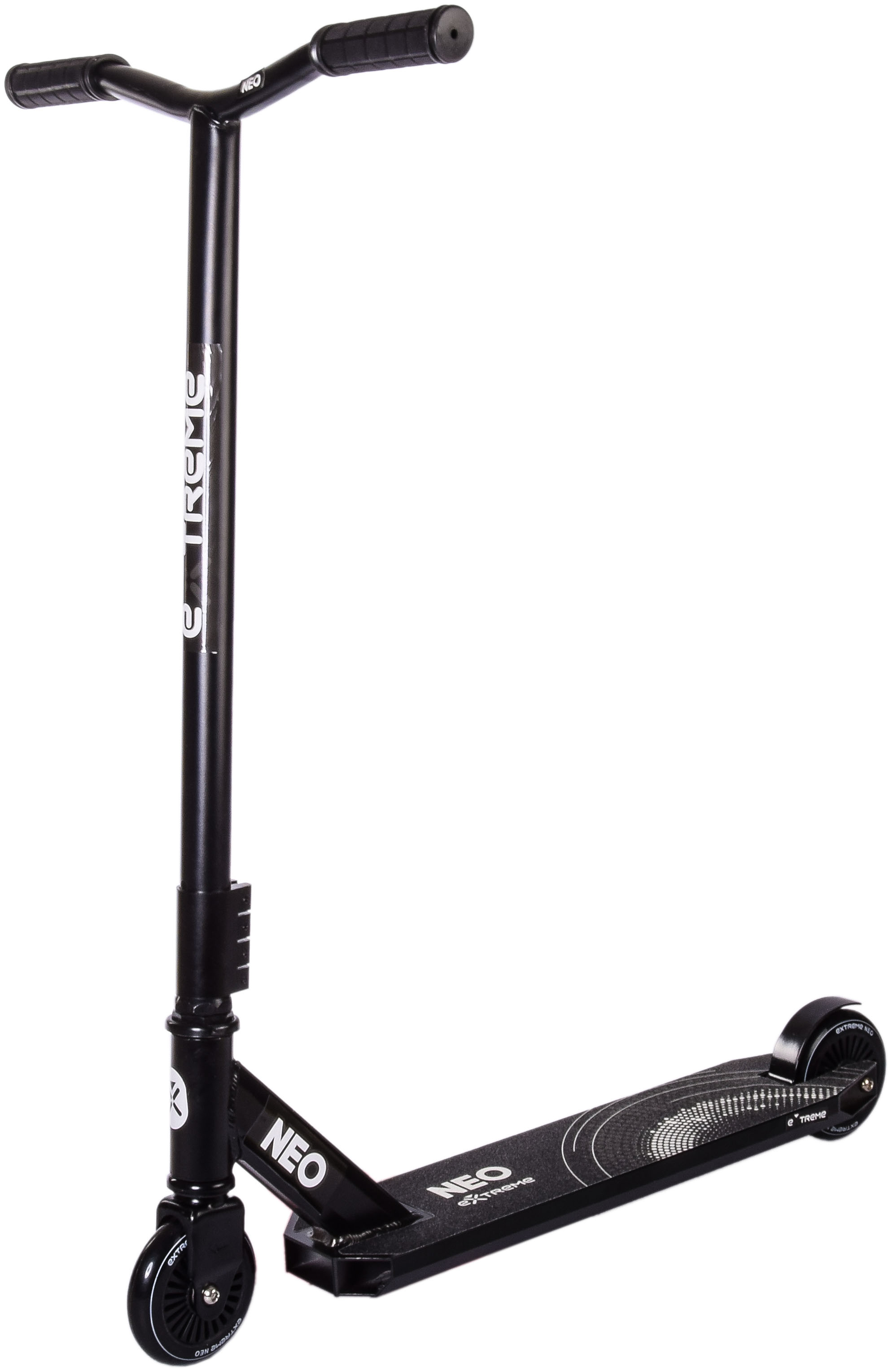 Колёса экстрим самоката диаметром 120 мм на цельных алюминиевых дисках с классом жёсткости PU 82A на лучших подшипниках ABEC-9 позволяют быстрее разгоняться и набирать более высокую скорость.