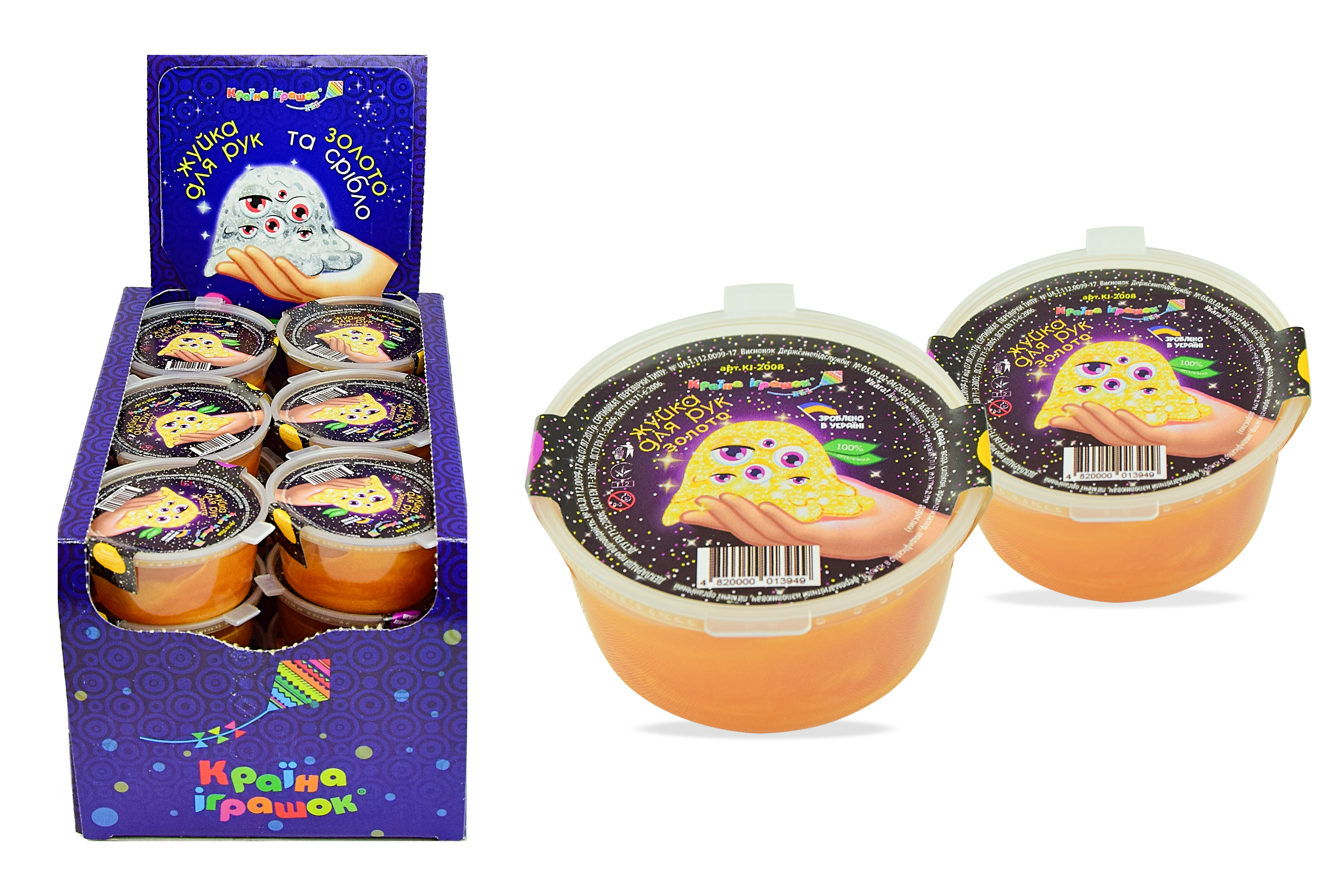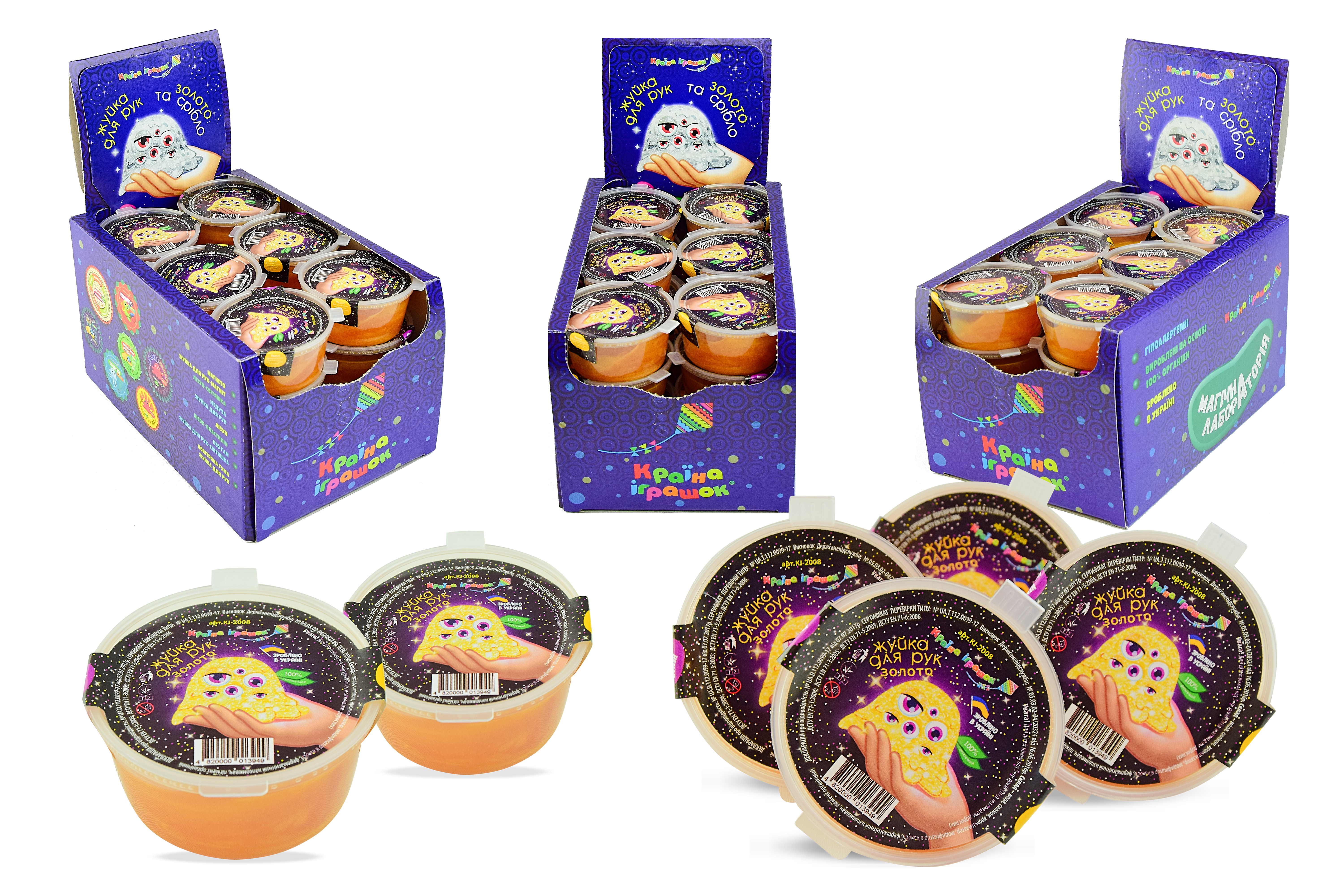 Жвачка для рук имеет мягкую консистенцию жвачки, блестящая.